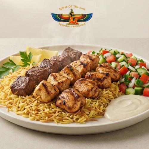 The Grille category brings together a selection of protein-focused platters served with rice and fresh salad. Each dish is prepared to highlight balanced flavor and dependable portions, making it ideal for lunch or dinner. Whether you prefer tender chicken, seasoned lamb, or seafood options like shrimp and fish, these meals are built to be filling without being complicated. At Spirit Of The East, we prepare our grilled plates with consistency and care, offering guests satisfying combinations of protein, rice, and crisp salad. As an Egyptian restaurant in Wilmington, DE, we provide simple, well-rounded meals that reflect traditional serving style while meeting everyday cravings. These platters are perfect for guests who want a complete and straightforward dining experience.